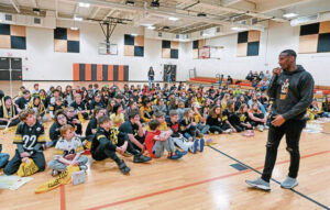 School can sometimes be a drag, but an educational show featuring an NFL football player and a professional DJ made for a fun afternoon for Acmetonia Primary School students.
